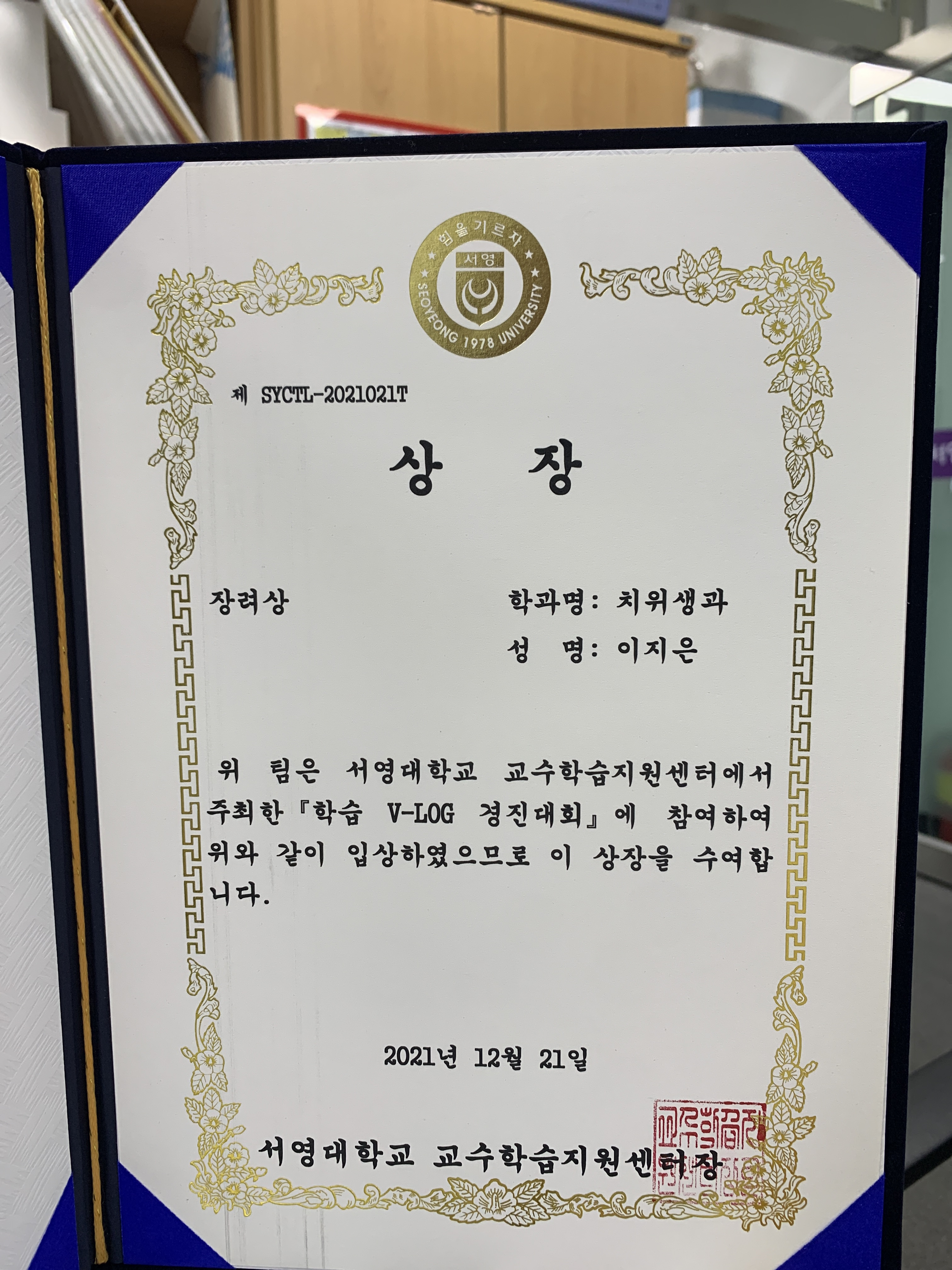 교수학습지원센터에서 주최한 학습 V-LOG 경진대회에서
