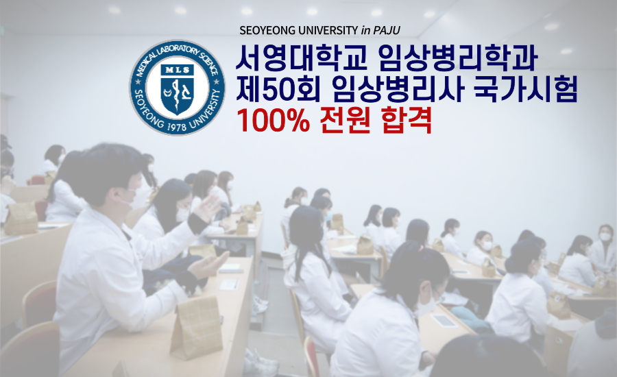 * 최강임상20학번이 제50회 임상병리사 국가시험에서 응시자 전원이 100% 합격하는 성과를 이뤘습니다. 모두 축하드립니다!