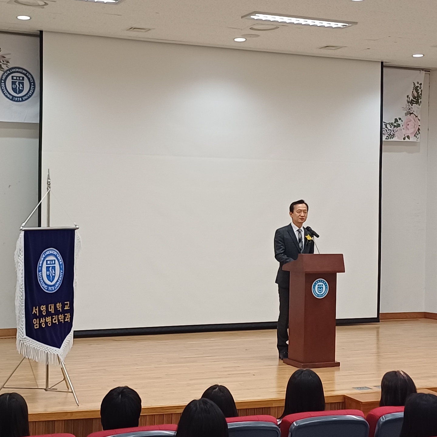 O. 입학홍보처장 장철인 교수는 축사를 통해 '임상병리사 윤리강령 선서식을 통해 임상병리사로서 갖추어야 할 이론과 임상실습을 통하여 직업에 대한 자긍심과 더불어 사명감을 갖고 환자의 질병진단검사에 책임을 다하는 임상병리사이자 의생명과학자가 될 수 있도록 부단히 노력해 주시길 바란다.'고 응원의 말을 전하였다.